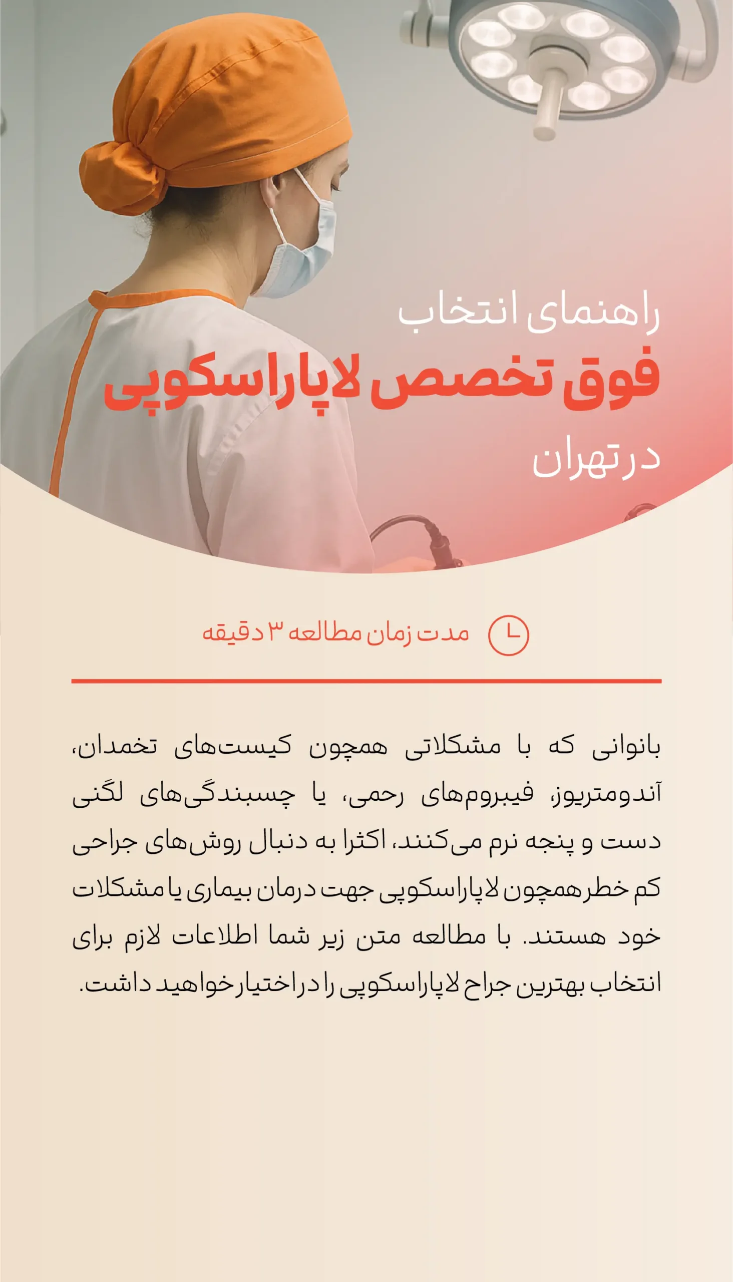 به دنبال جراحی باشید که تجربه گسترده‌ای در انجام عمل‌های لاپاراسکوپی برای شرایط شما داشته باشد